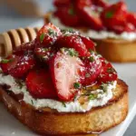 Jeder Bissen ist eine Explosion an Aromen – die süßen und leicht säuerlichen Erdbeeren umhüllen die Geschmacksnerven, während die unglaubliche Cremigkeit des Ricottas die Texturexplosion perfekt abrundet. Der geröstete Sourdough verleiht diesem Gericht eine unwiderstehliche Knusprigkeit, die jeden Mouss erzeugt, mit dem du bite für bite genießen kannst. Vergiss die hastigen Frühstücke – dieses Rezept lädt dazu ein, den Moment zu zelebrieren und sich mit gutem Essen eine Auszeit zu gönnen.
