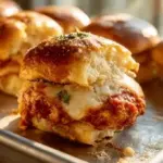 Warme, saftige Hühnchen-Parmesan-Slider mit knuspriger Panade, schmelzendem Mozzarella und aromatischer Tomatensauce – perfekt für jeden Anlass.