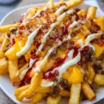 Egal, ob Sie ein langjähriger Fan von Fast Food sind oder einfach nur ein köstliches, einfaches Gericht für einen geselligen Abend zu Hause suchen, diese Pommes sind mehr als nur ein Snack; sie sind ein Erlebnis. Die Mischung aus knusprigen Pommes, schmelzendem Käse und der einzigartigen Spezialsoße wird Ihre Geschmacksnerven auf eine Reise schicken, die Sie immer wieder erleben möchten.
