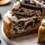 Ein unwiderstehlicher Oreo-Kekskuchen, der die Grenzen zwischen Kuchen und Keks überschreitet, mit einer Kombination aus knusprigen Oreos und cremigem Frosting.