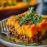 Eine wärmende Hirtenpastete voller Geschmack mit Süßkartoffeln, Linsen und frischen Kräutern – ideal für vegane und vegetarische Genüsse.