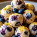 Erfrischende Energie-Happen aus Hüttenkäse, Blaubeeren und Zitrone – perfekt für einen gesunden Snack oder ein leichtes Dessert.
